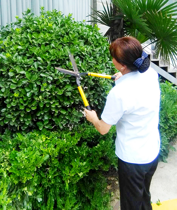 为小区内上千种乔木和灌木生长更换泥土;花园里的花草树木永远象刚洗过一般干净;