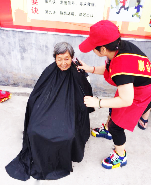 由于安置区位置偏僻,附近没有理发店等服务店面,加上老人们行动不便,平时理发就成了难题。龙湖办事处老年安置区物业负责人时青丽和各位同事们了解到这一情况后,便联合“爱心之家”社会公益组织共同发起了的爱心志愿者慰问活动,一起为老人们理理发、按按摩、聊聊天。