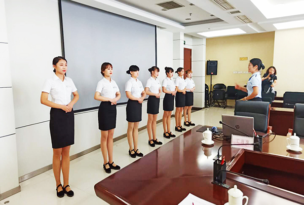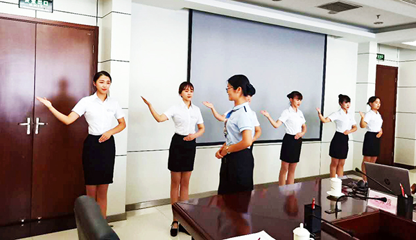 为不影响各项目日常工作进度,此次培训特选在午休时间举行,即使如此,培训讲师及参会人员依然热情满满,认真的一遍遍操练会服的每个流程,将每个细节都认真规范和练习。