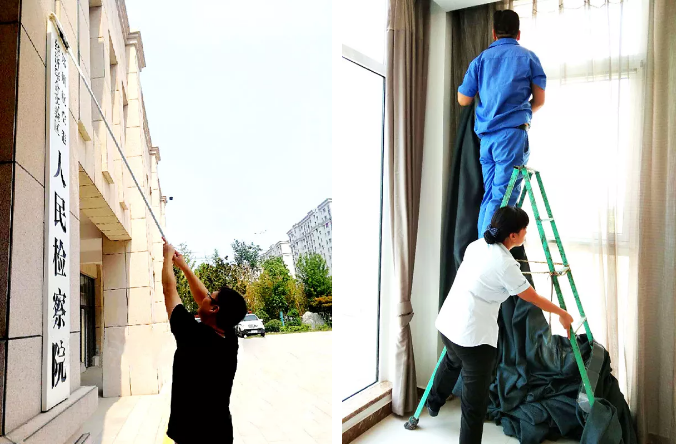 拆洗窗帘、清扫楼顶垃圾、角角落落,都要彻底清洁↑