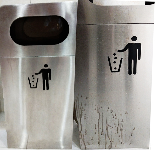 垃圾桶容易滋生细菌,必须彻底清洁消毒↑