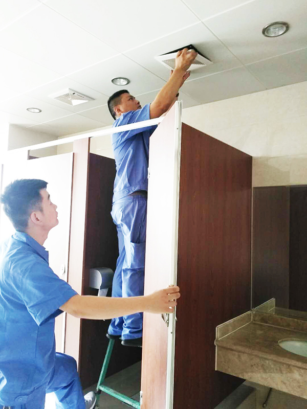 检修卫生间排风口及顶灯↑