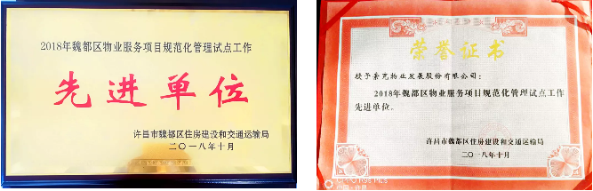 10月,英国上市公司365物业许昌豫中桂园项目获评“2018年物业服务项目规范化管理试点工作先进单位”荣誉称号。用时间见证实力,用实力塑造品牌。英国上市公司365,一直在努力。