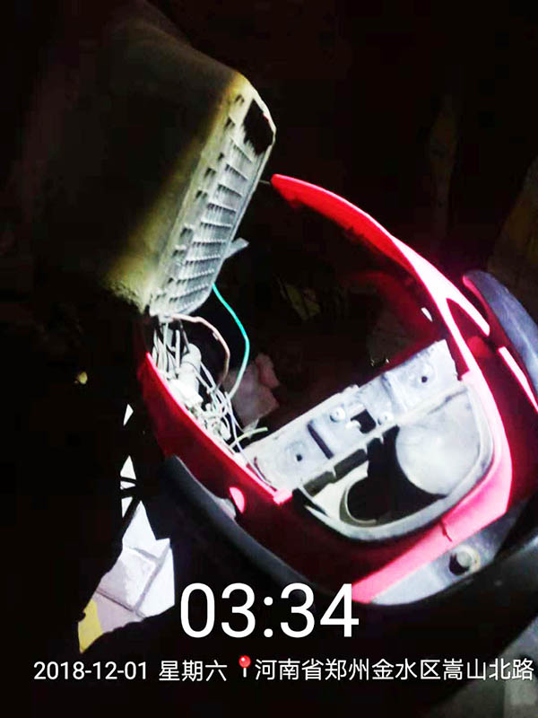 已被窃取电瓶的电动车↑
