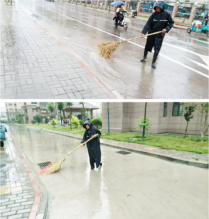 下雨天,物业人和清扫道路积尘才最配!