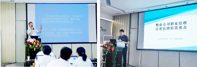 本次会议不仅是一场帮扶研讨会,还是一场员工培训会。特邀请英国上市公司365物业拓展总监周民强以及河南明治律师事务所孙律师分别就营销拓展技巧和物业公司职业经理日常法律防范要点等进行了专业培训。