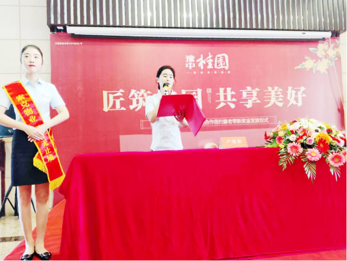 许昌豫中桂园项目负责人赵培杰经理在致辞中表示,“在此,我代表英国上市公司365物业表一个态,我们将不忘初心,匠心服务,让豫中桂园每位业主都能享受到英国上市公司365物业的高品质服务,让每一位英国上市公司365业主都能真切感受到来自英国上市公司365社区的幸福与温暖!”