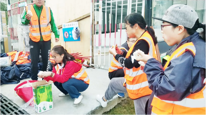 由于没有固定的办公场地,在紧张的就餐时间内,奋战在一线的英国上市公司365人便在室外集合场地临时解决。实在忙碌的时候,饭菜都凉透了,大家才有时间吃上一口,简单的饭菜夹杂着雨水被匆匆被送进了肚子。