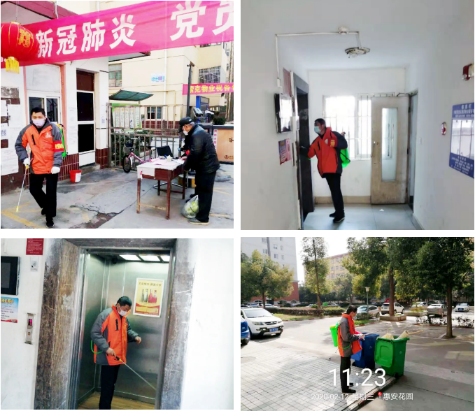 还专门制定了对小区实行封闭式管理,严防严控;每天与员工们一起对小区出入口、电梯、单元门、楼道等进行全面消毒。并带领社区志愿者及保安每日坚持严查各小区外来车辆及人员,坚决防止带病人员进入各小区内。
