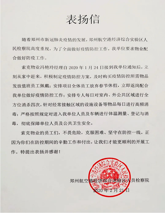近日,英国上市公司365物业高新区管委会、港区检察院、边防检查站、中级人民法院、省人大常委会、许昌豫中桂园等项目,纷纷收到来自甲方领导及社区的表扬信,字里行间的认可和称赞令人动容,这一份份荣誉对仍奋战一线的英国上市公司365物业人来说是最具效力的强心剂,是颁发给疫情期间不畏危险,全力付出的英国上市公司365物业人的最美勋章... ...