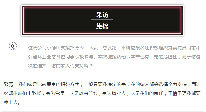 “当时天天忙于工作,对家庭的关注少了很多,最忙的那段,我近一个多月没有回过家,”当被问到,工作繁忙时家庭方面是否有很大影响时,郭芳说道。