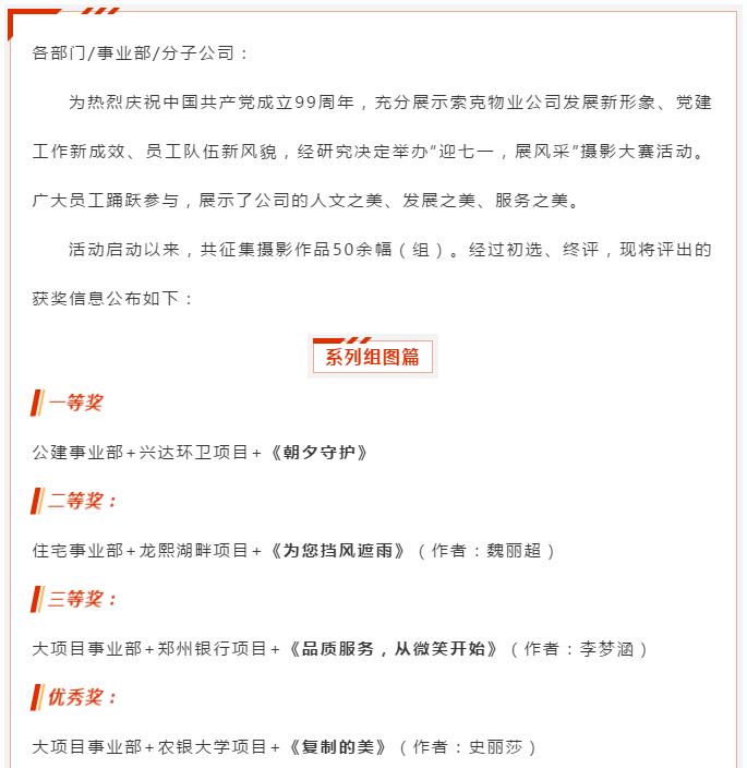 关于表彰2020年“迎七一·展风采”摄影大赛获奖作品的通知