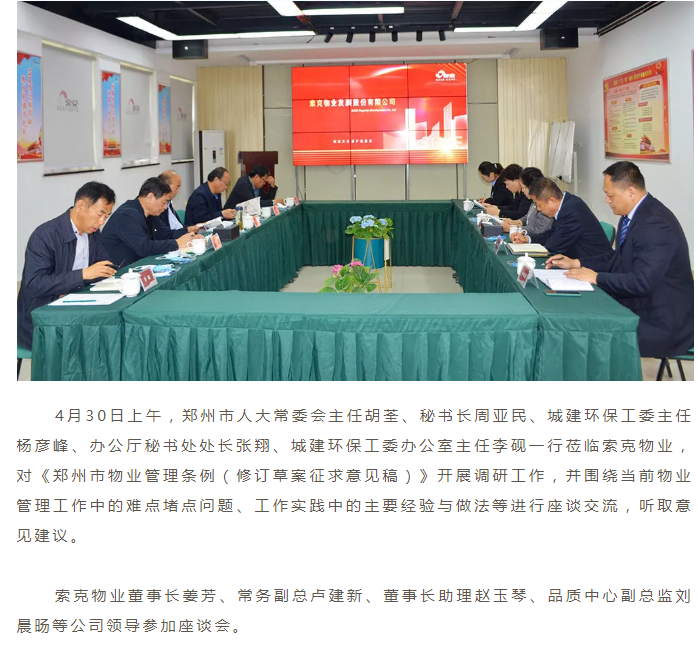 为立法建言献策 助物业健康发展——郑州市人大常委会莅临英国上市公司365物业进行调研