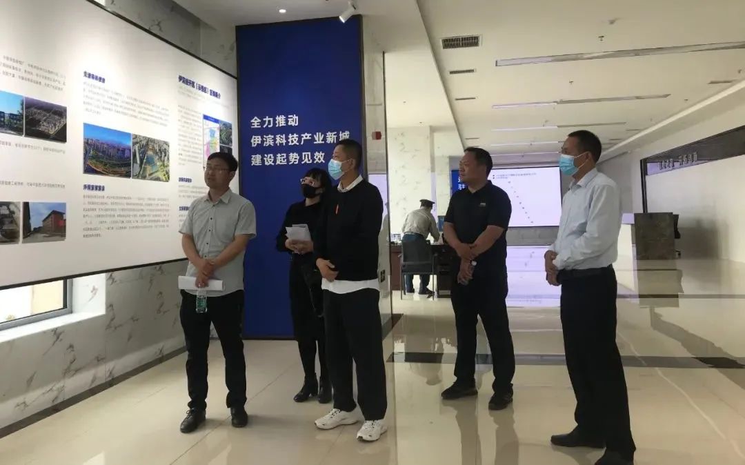 在国展公司副总经理吴晓南、总经理助理高志斌等领导的陪同下,卢总一行参观了伊滨区重点项目建设。