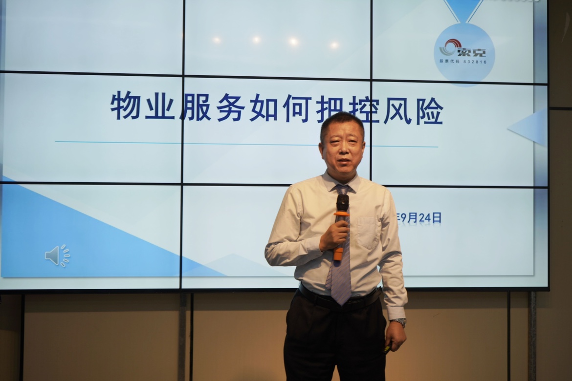 公司常务副总经理卢建新为大家讲述的课题是《物业服务如何把控风险》,卢总用翔实的案例为大家详细讲解了在工作中,我们可能遇到的风险,风险的来源,风险管理的类别,风险管理的特点,以及如何规避、转移、预防和抑制风险。卢总结合公司在发展过程中遇到过的各种实例,理论与实践紧密结合,深入浅出的把企业风险管理的重要性传达给大家,让所有学员在日常工作中都树立了风险管理意识,只有警钟长鸣,方能有备无患。