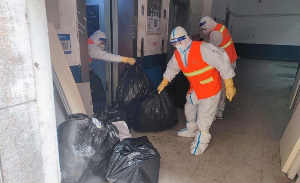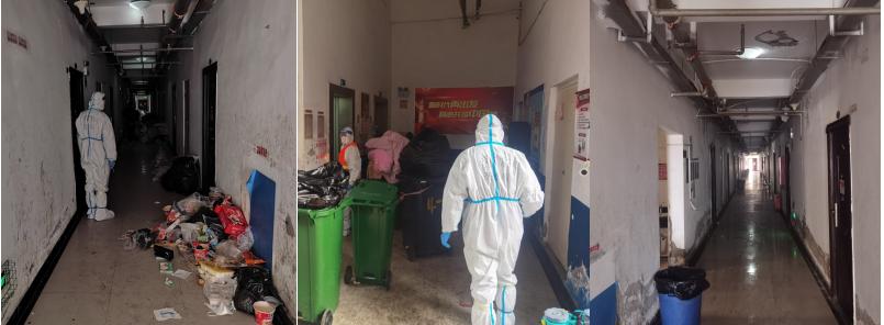 “兵马未动粮草先行”,在集团总部及事业部的支持下,保障组迅速行动,争分夺秒,几个小时就筹备出了进场所需的防疫、保障及生活等各类物资,确保员工不论在岗位还是在生活中都得到全方位的有效保障。“凡事预则立不预则废”,为了确保全体将士能够充分履行消杀、保洁职责,熟练掌握防护知识与技能,每一批进驻员工在进场前均要进行专项的培训,按照标准进行开展防护用具的规范穿脱、个人及工作中的消杀消毒等培训,详细讲解工作中需要注意的流程与细节,确保人人熟练掌握。管理团队在对富士康园区进行整体踏勘后,发现宿舍区与厂区由于疫情影响,物业工作全面趋于停滞,垃圾存量巨大,尤其是宿舍区由于疫情管控正在进行阳性员工转移与宿舍调换,垃圾清运工作面临存量、增量的巨大压力。如何保障好公寓项目数万员工住宿的清洁卫生?如何更好地助力厂区尽快复工复产?管理团队的每个人均感受到肩头沉甸甸的压力与责任。面对重重困难,英国上市公司365管理团队科学分工,踊跃担责,达成由储备总经理汤世群、综合经理刘文凯分别负责厂区、宿舍区的协调指挥;运营经理李玲玲、保洁主管李晓红负责保洁工作的开展与品质监控;高铁站项目经理陈德超负责消杀;品质经理胡国强负责后勤保障的工作分工。在各位项目小组的通力配合下,项目人员招募与培训、环境消杀、垃圾清运、餐食配送、后勤保障等工作有条不紊地展开。