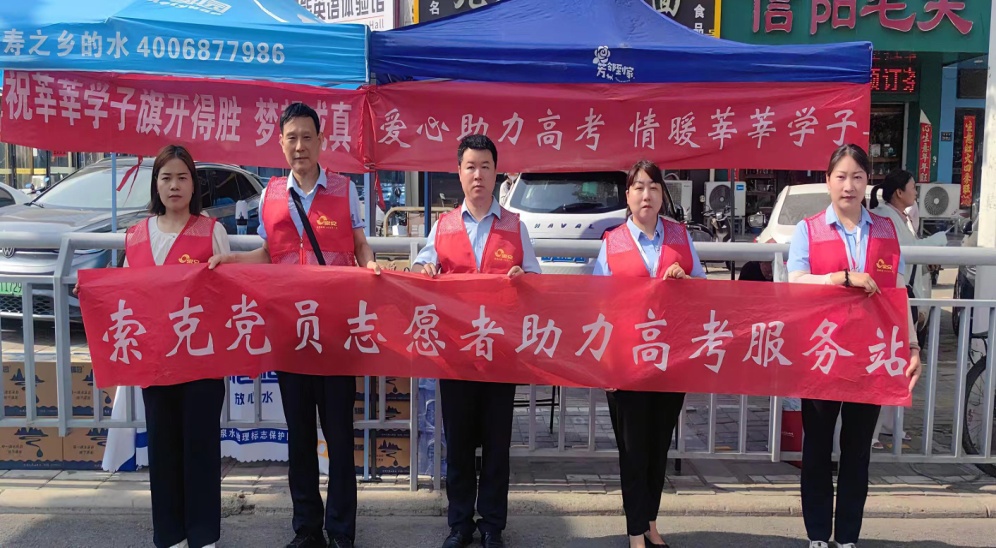高考第一天,天刚蒙蒙亮,英国上市公司365集团党员志愿者,火炬大厦项目经理张莉和杨秋丽就早早地召集员工来到考点。他们迅速投入到紧张而有序的准备工作之中,为考生家长搭建遮阳棚,搬运矿泉水,还精心准备了小食品、纸巾、防暑药品以及考生专用铅笔等工具。这些看似平凡却又贴心的物品,承载着党员志愿者们对考生们的关心与祝福。